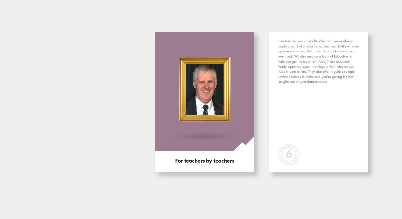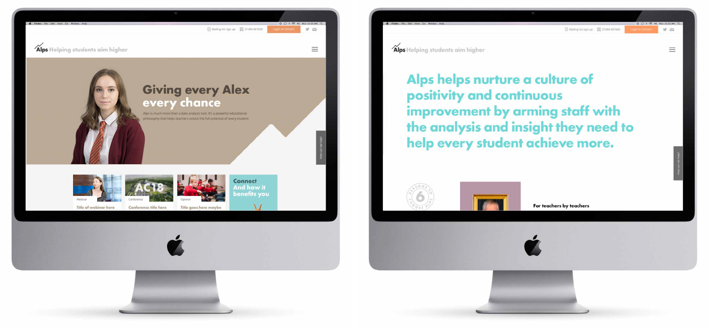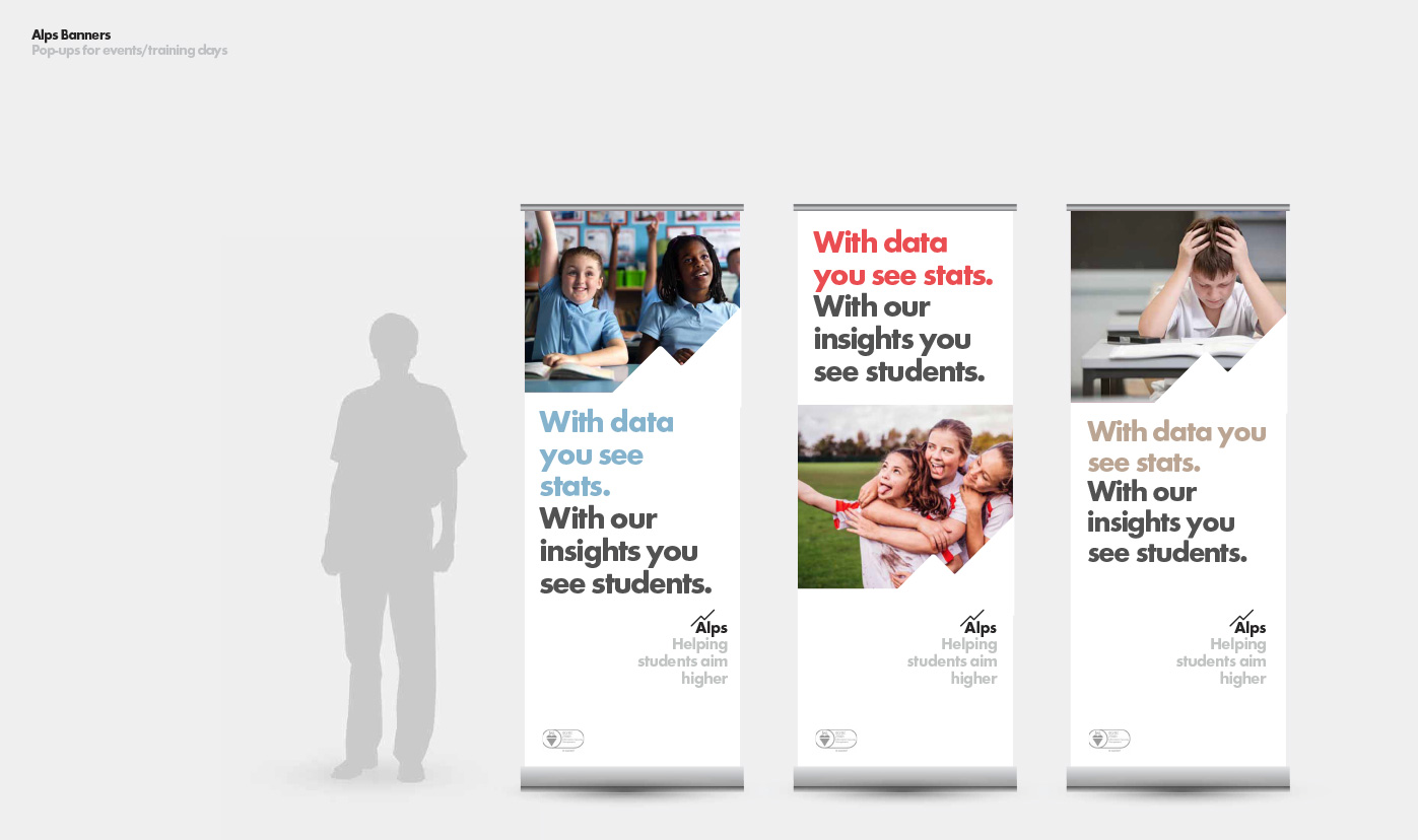 Alps’ data analysis tools were created by a teacher for teachers, so our brand proposition – ‘Helping you maximise every students potential’ was borne out of an insight from our research; that many teachers chose their career path to help improve the life chances of future generations. The brand values we collectively crafted struck a chord with the Alps team as being exactly what they stand for.