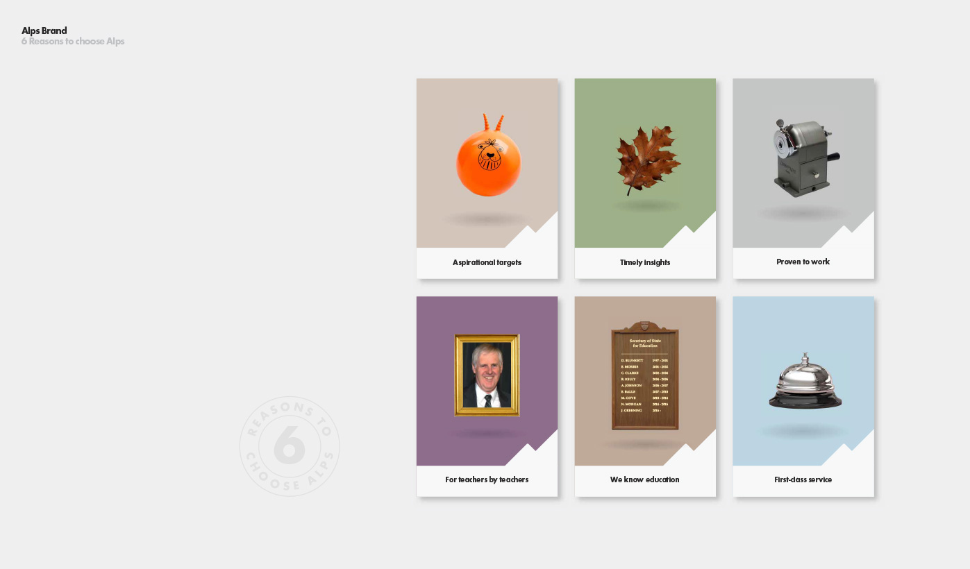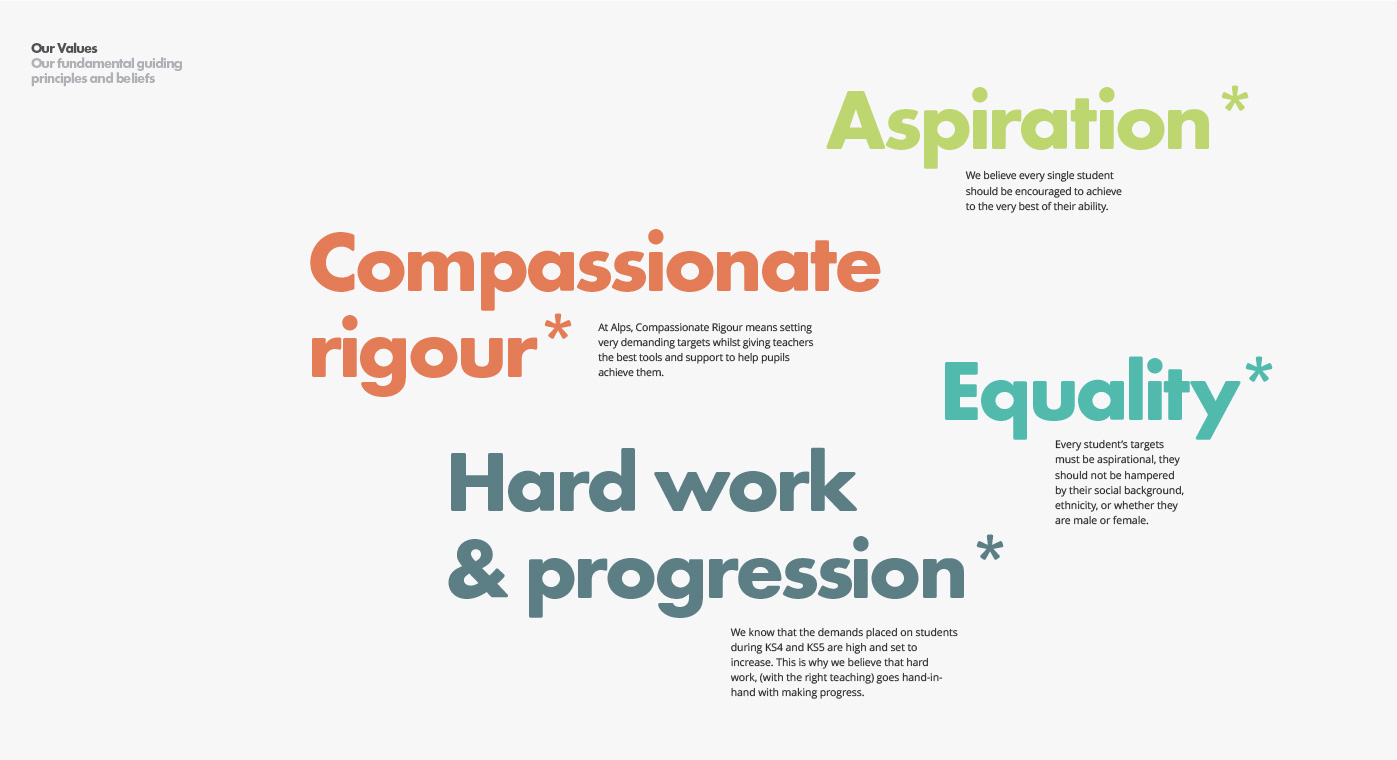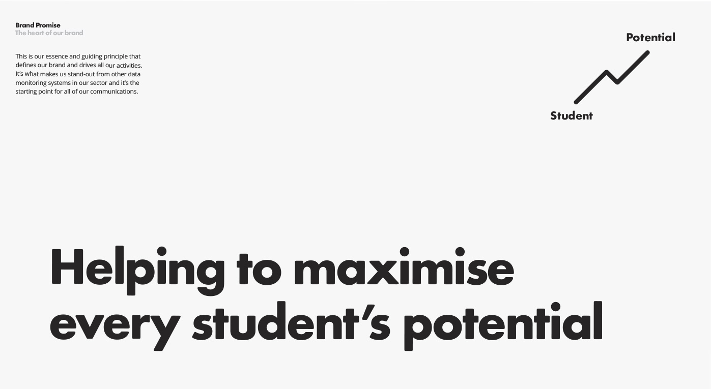 Alps’ data analysis tools were created by a teacher for teachers, so our brand proposition – ‘Helping you maximise every students potential’ was borne out of an insight from our research; that many teachers chose their career path to help improve the life chances of future generations. The brand values we collectively crafted struck a chord with the Alps team as being exactly what they stand for.